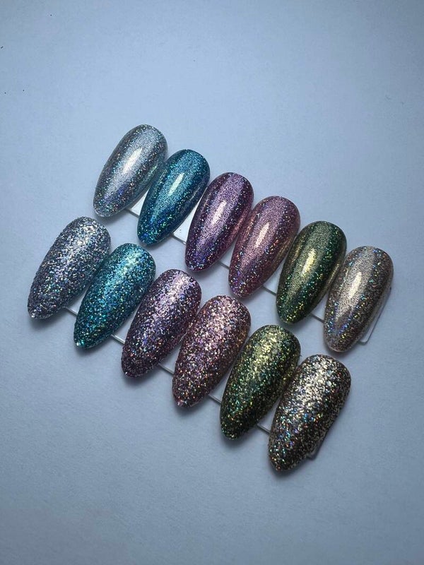 Dit zijn hele fijne glitters en kunnen heel goed gebruikt worden om in te poetsen of als sugar nail.