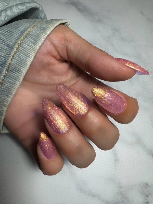 Buildergel In A Bottle 21 is een goud roze glitter kleur.