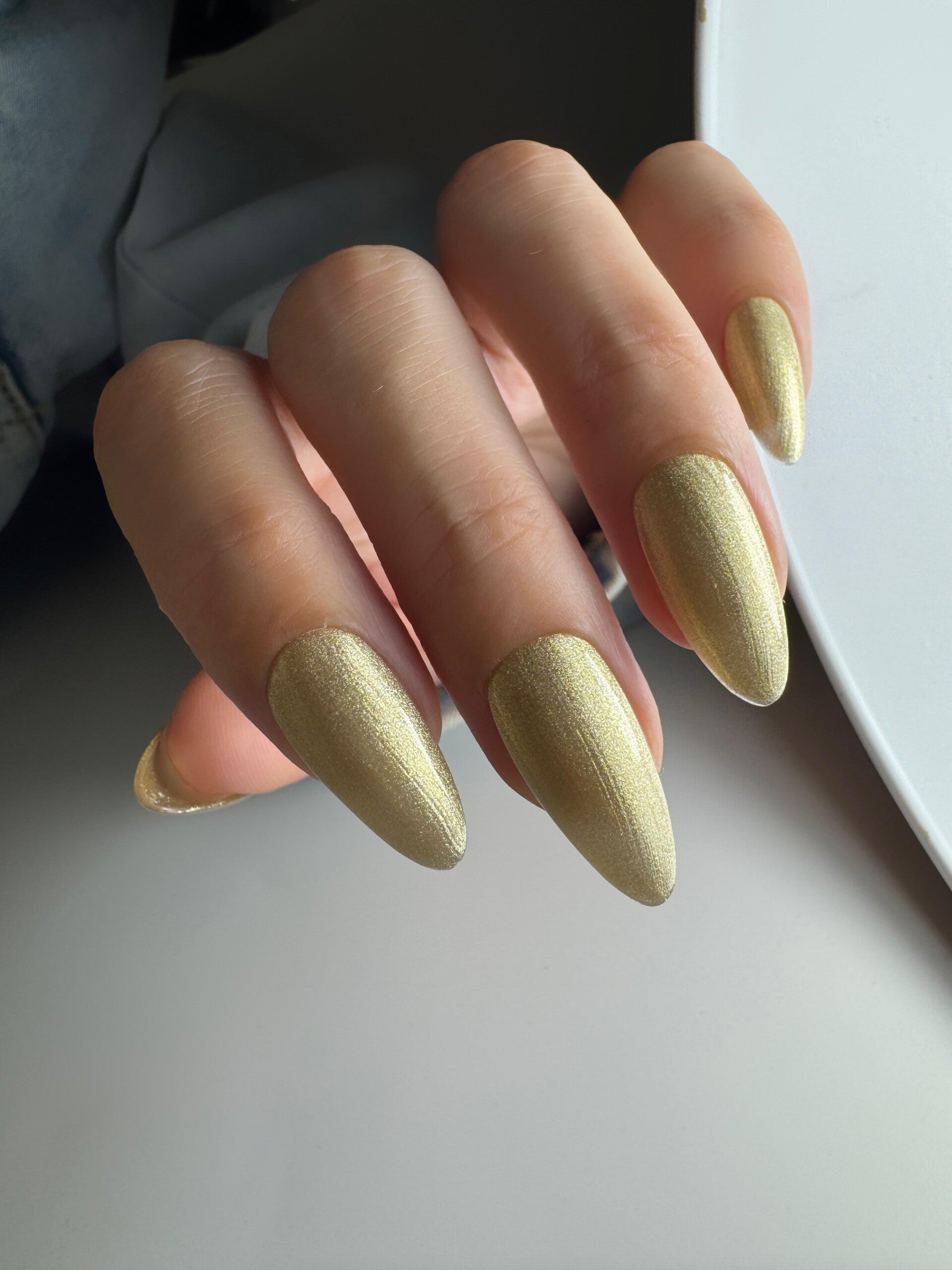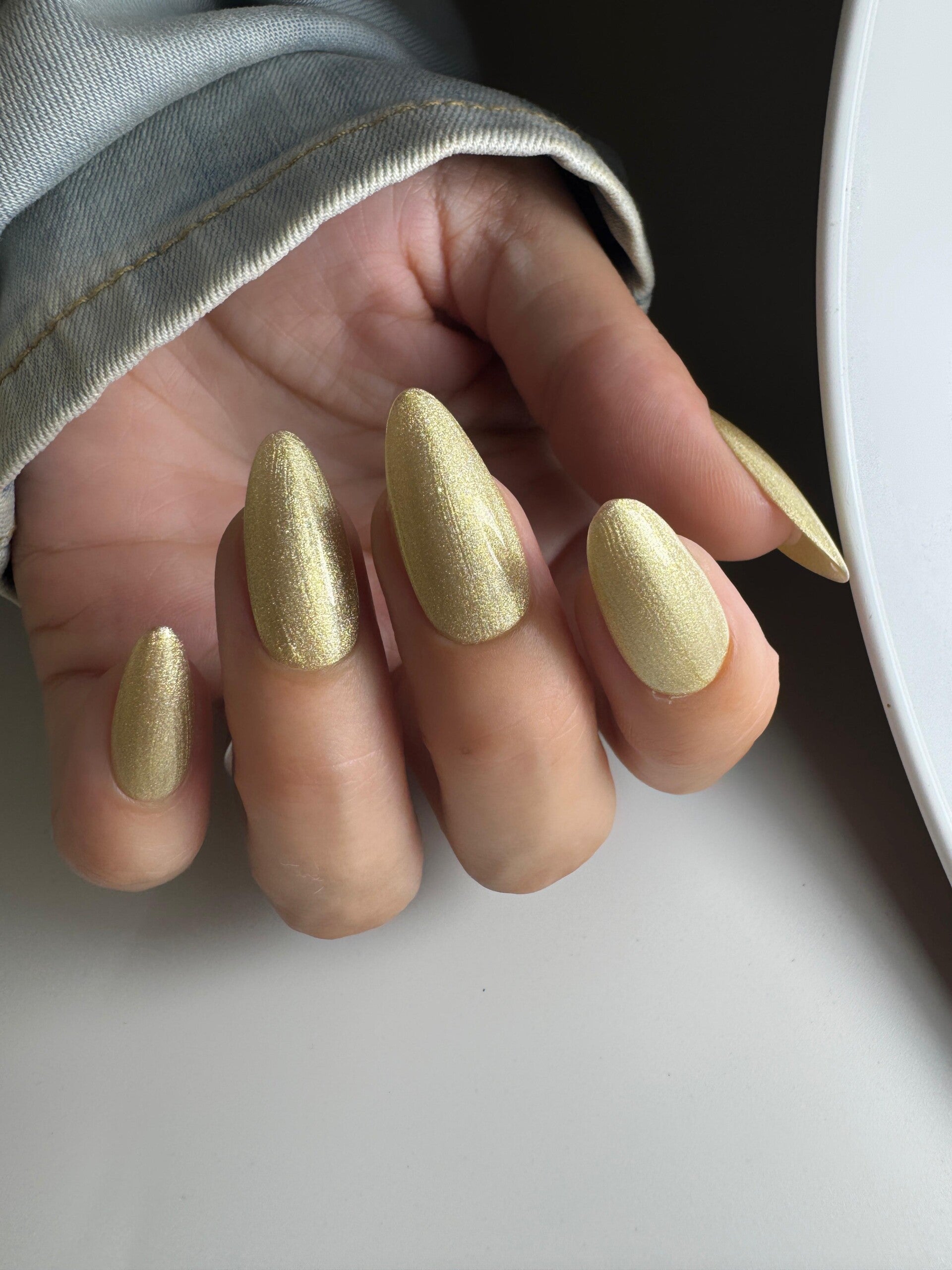 Gelpolish 27 is een gouden glitter kleur.