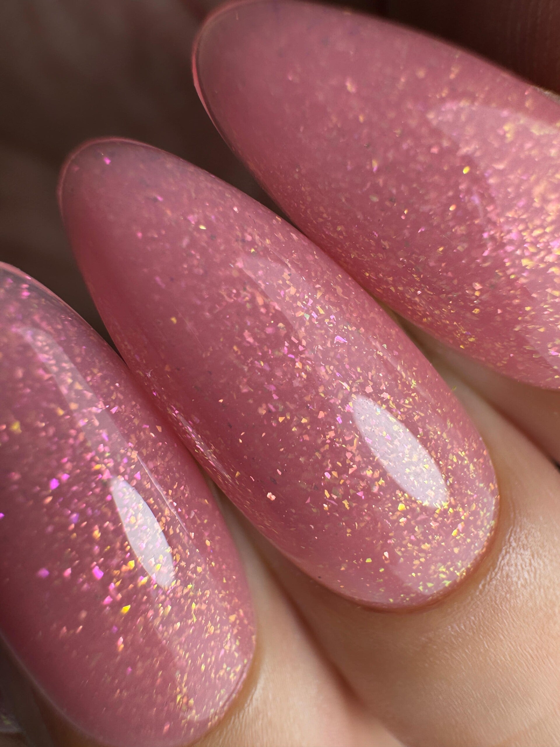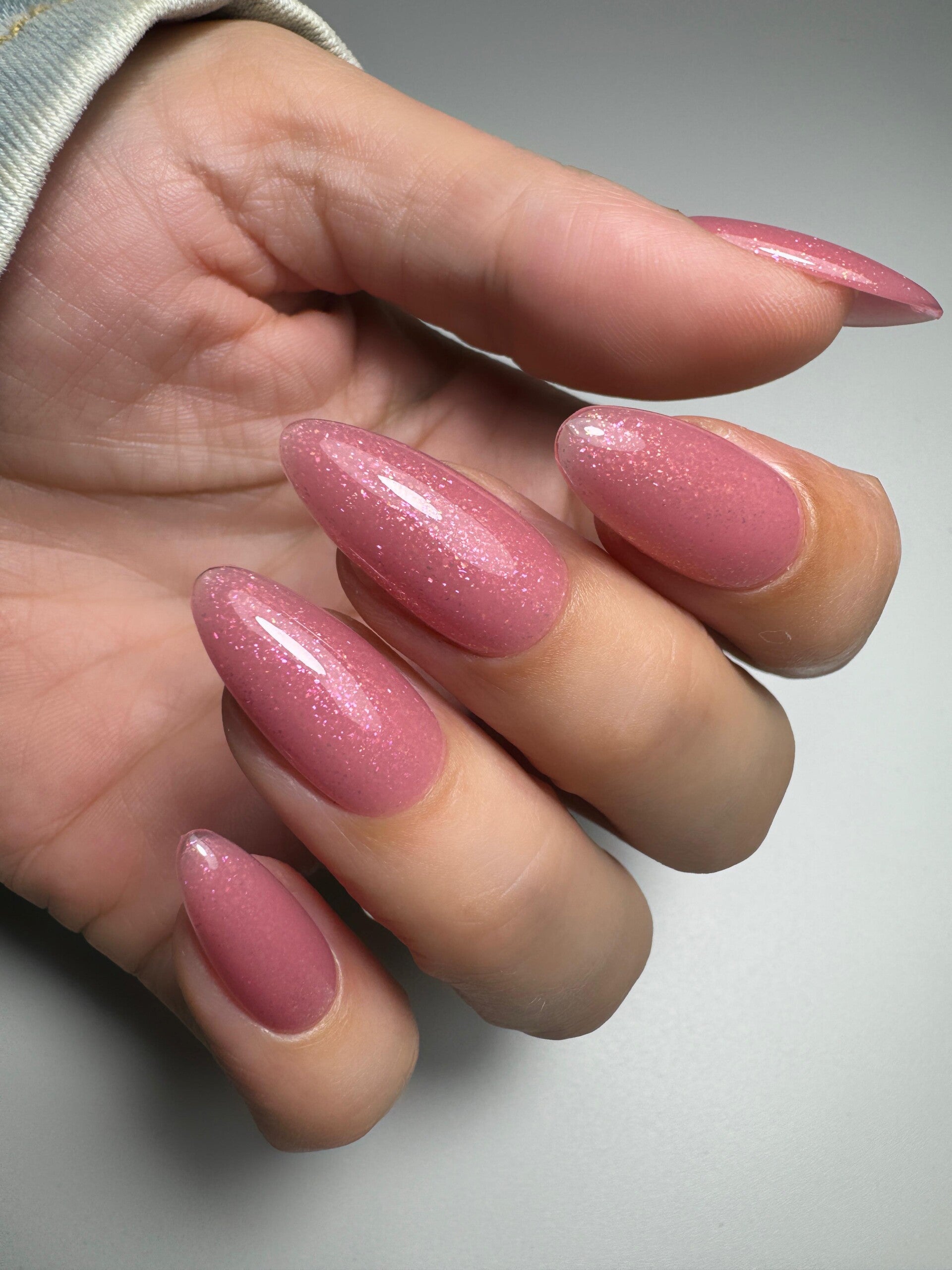 Buildergel In A Bottle 38 is een roze kleur met roze glitter.