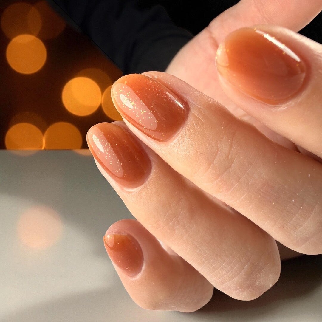 Deze topcoat heeft prachtige kleine gouden flakes. Het geeft net die extra touch, maar het is geen overheersende topcoat. Hij blijft mooi egaal.