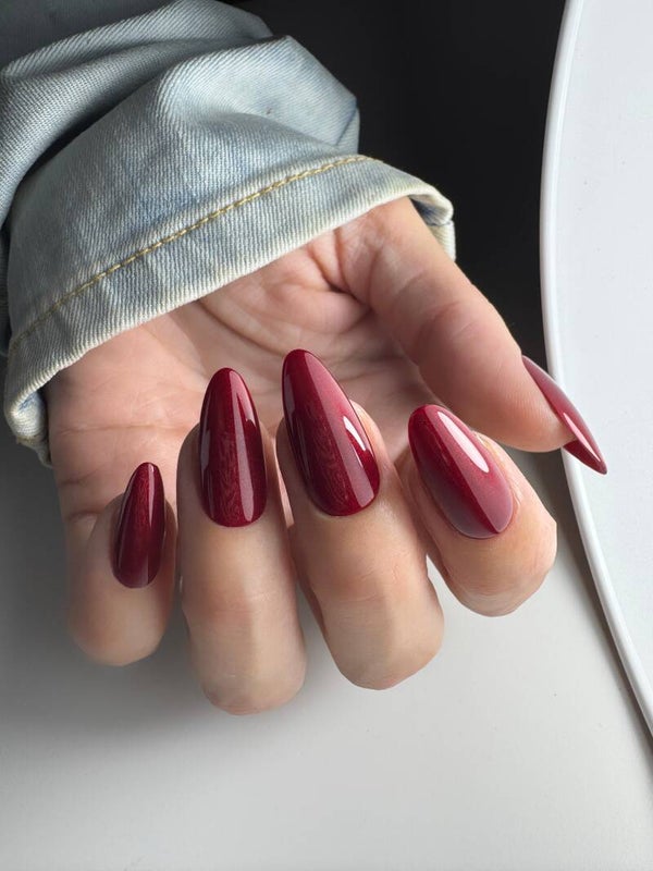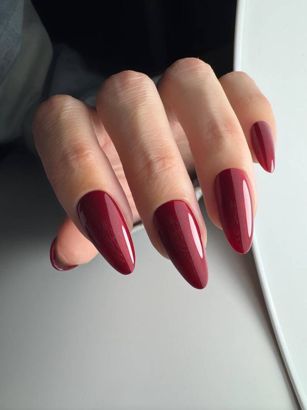 Gelpolish 32 is een bordeaux rode kleur met glitter.
