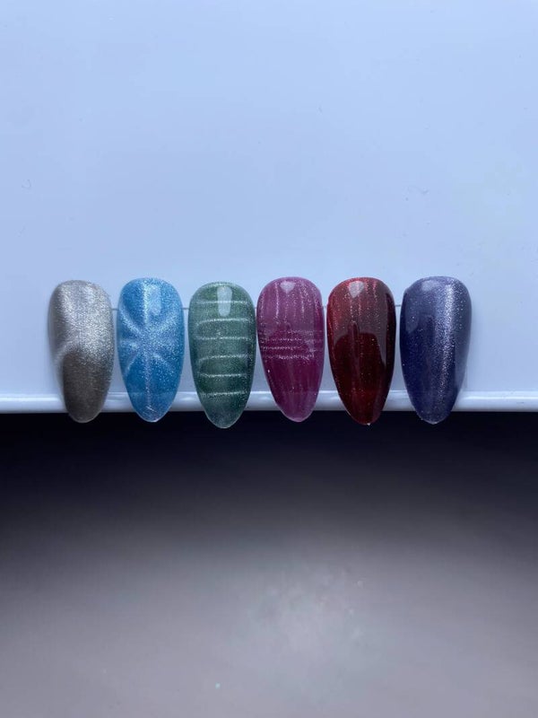 Met dit magneet kun je erg mooi sterren design maken op elke cat eye gelpolish. Zoals op nagel twee op foto 2.